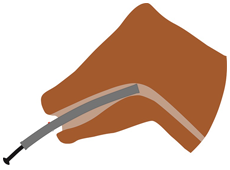 is curved like the route through the oral cavity to the esophagus. Its end is rounded. The